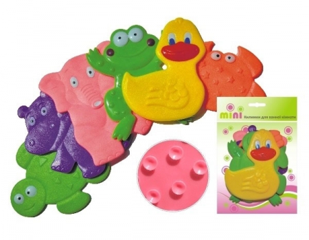 Игрушки выполнены в виде таких животных как: черепашка, бегемотик, слоненок, лягушка, уточка, крабик. С помощью ковриков для ванной MINI можно изучать цвета, развивать мелкую моторику, а также игрушки на присосках исключают риск поскользнуться в ванной.
