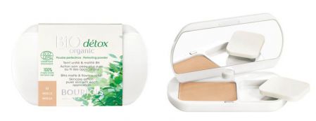 Созданная для бережного отношения к коже, формула компактной пудры BIO Détox на 100 % состоит из натуральных ингредиентов и обладает сертификатом Ecocert как натуральная косметика. Она включает в себя множество натуральных компонентов, в сердце которых лежит ее звездный ингредиент – растительный хлорофилл, который улучшает вид кожи и одновременно оказывает очищающий эффект:
