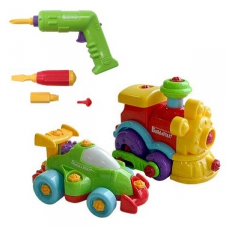 Благодаря наличию инструментов малыш самостоятельно может разобрать на составные части и паровозик и гоночную машину, затем при помощи инструментов собрать из заново. Ребёнок заворачивает/разворачивает шурупчики отвёрткой или реально
