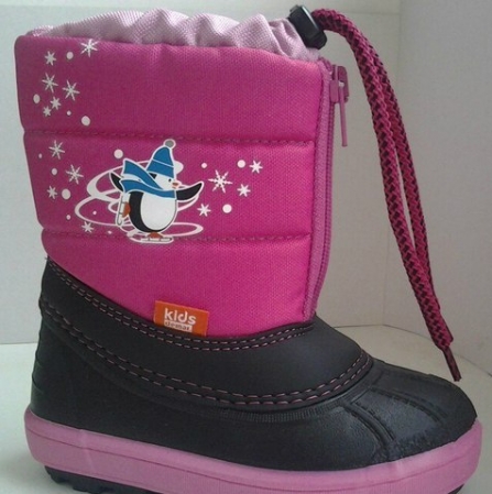 У нас две пары зимней обуви: термосапоги Timberland и зимние сапожки Demar. Довольны и обеими парами. Демары (у нас похожая модель как на фото) можно носить в мокрый снег спокойно, в них тепло (ножка ни разу не была мокрая), и ребенок их одевает сам. Плюсы: Теплые, не промокают, симпатичные как для снегоступов. Минусы: Голенище широкое. |