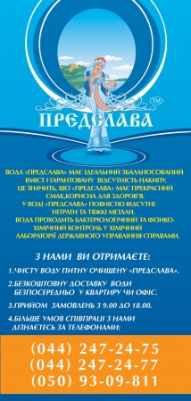 Воду такого качества вам точно никто не предложит. Скважину для добычи этой воды пробурили еще во времена СССР, в 1966 году для снабжения водой первых лиц республики. Глубина скважины - 300м, далеко не каждый завод минеральных вод может похвастаться такой глубиной. Вода «Предслава» и сейчас поставляется в Верховну Раду Украины и другие высокие инстанции. Дополнительно вода еще и обогащена кислородом, что благотворно влияет на здоровье.