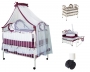 Матрасик, люлька и балдахин выполнены в бело-бардовой гамме