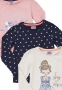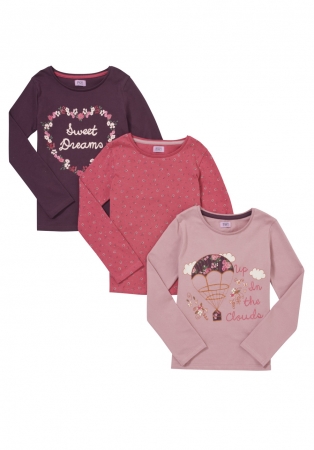 In a pretty pack of three, these long sleeve t-shirts include a sequin embellished girl and puppy motif tee, a star print tee and a pink tee with floral Love slogan. Made in soft jersey, these t-shirts will look cute with trousers, jeans or denim skirts.