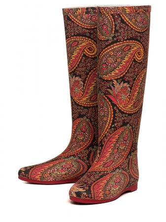 Прекрасные резиновые сапоги, оформленные восхитительным рисунком. Изделие с закругленным мыском. Модель станет замечательным дополнением к осеннему гардеробу.